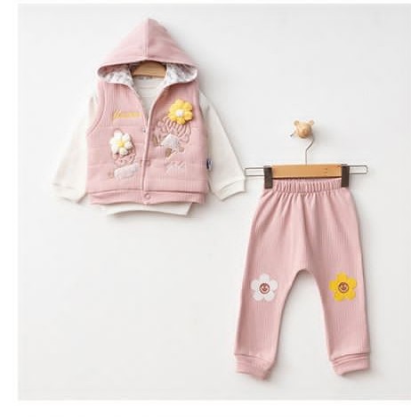 Çiçek Detaylı Yelekli Kız Bebek Takım
